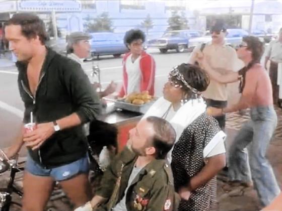 next to Chevy Chase. He stops at a hot falafel stand until the vendor