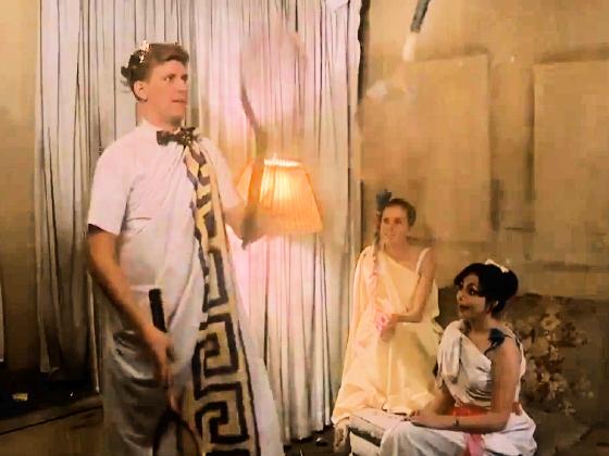 At 49:00, in the infamous toga party scene, James Widdoes, playing