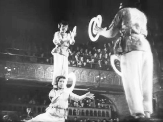 At 55:58, a man passes 5 rings with a woman who has a boy standing on